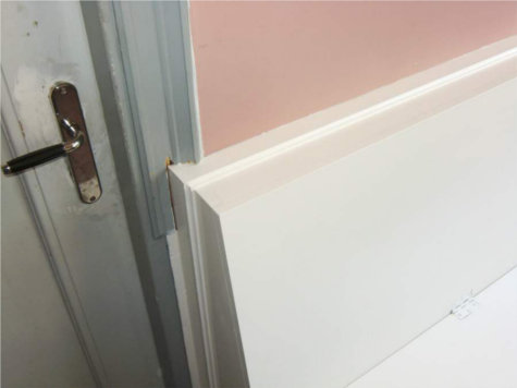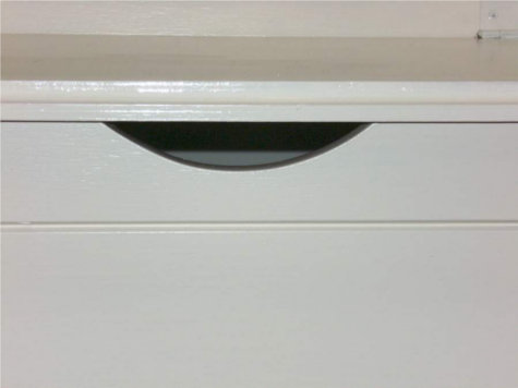 Het meubel is op maat gemaakt zodat het precies tegen de muur past. De randen, waar het meubel de muur raakt, zijn omgeven door lijstwerk.