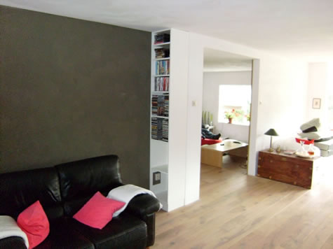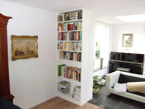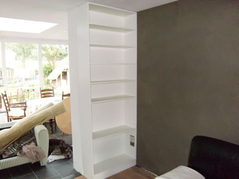 Dit was puur maatwerk. Drie kasten. Twee boekenkasten en een smalle kast voor cd's en elpee's.