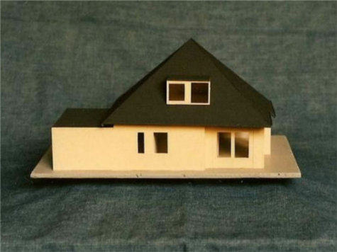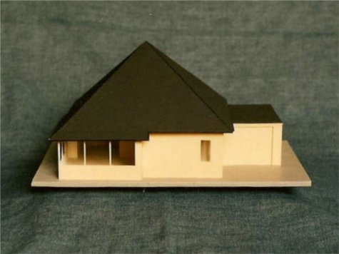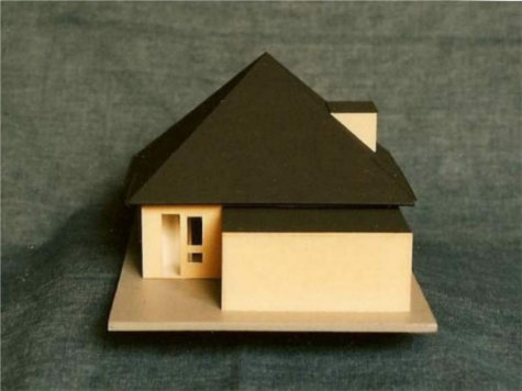 Dit is een studiemaquette van een stolpwoning. Alleen het interieur hoefde getoond te worden.